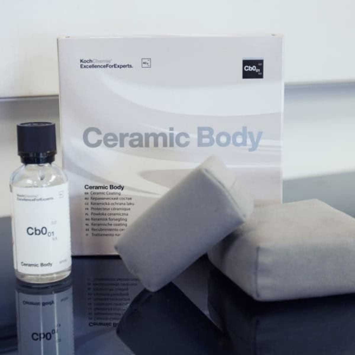 Koch-Chemie – Ceramic Body Cb0.01 е високо технологично керамично покритие, от последно поколение, с много голяма твърдост и високи хидрофобни свойства, приложимо върху много повърхности с цел тяхната защита. След полагане образува тънък постоянен слой който се свързва посредством химическа реакция с повърхността.